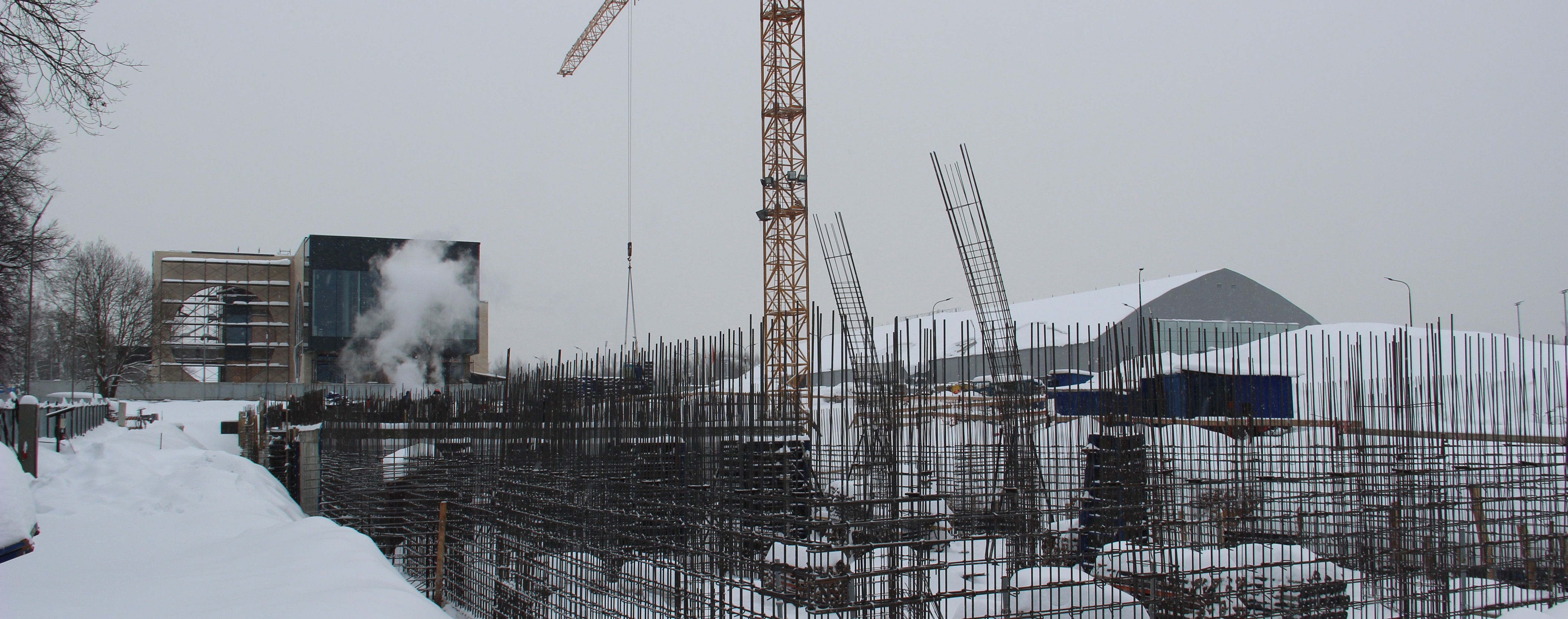 Сейчас в первой секции выполняется монтаж вертикальных конструкций, в третьей — устройство плиты перекрытия подземной части.