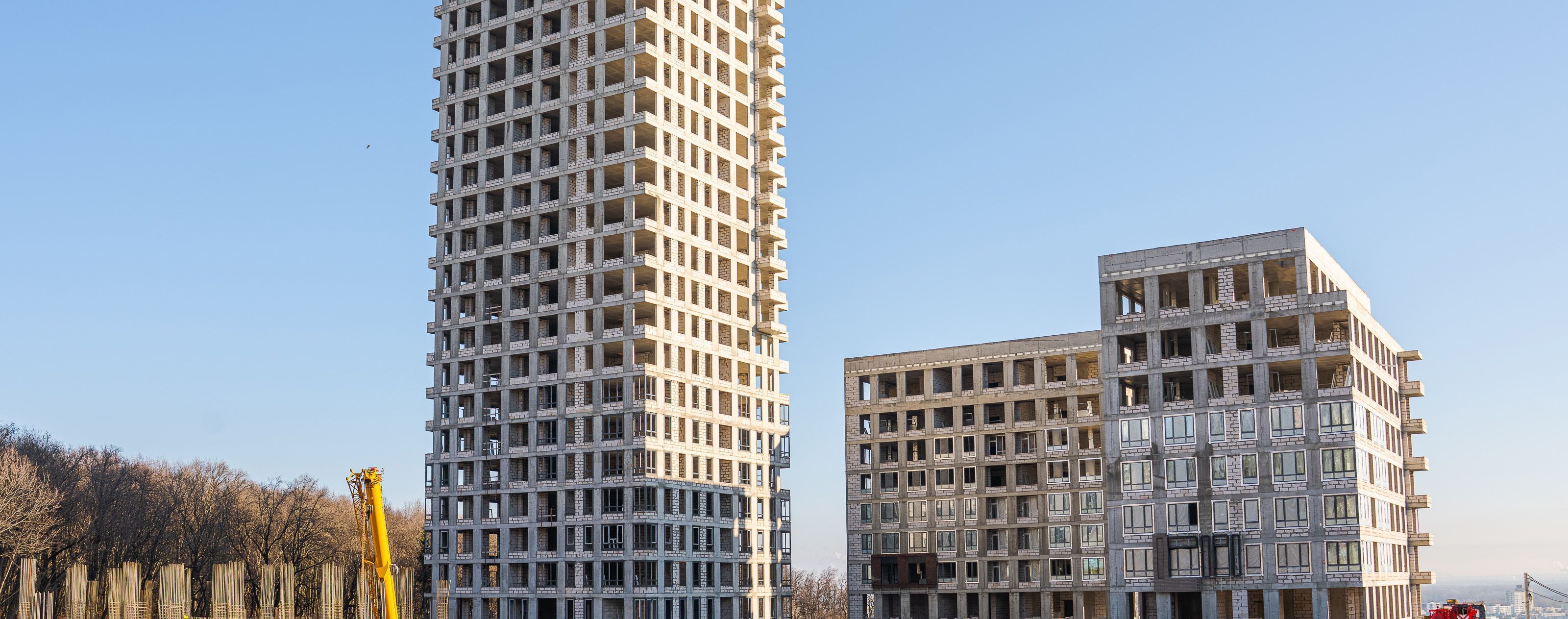 В первом и третьем корпусах закончены монолитные работы, проведены гидроизоляция и утепление стен подземной части домов. Строители выполнили каменную кладку наружных и внутренних стен из газобетона и завершили гидроизоляцию кровли. Сейчас инженеры монтируют системы вентиляции, дымоудаления, отопления и выполняют электромонтажные работы. Установлены оконные конструкции с 4-го по 9-й этаж.