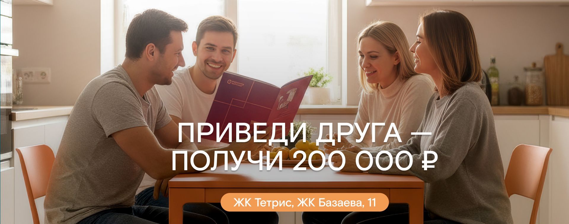 ГК «Садовое кольцо» дарит 200 тысяч рублей за рекомендацию покупки квартиры в одном из подмосковных ЖК компании — «Тетрис» или «Базаева 11». Предложение действительно на покупки оформленные после 1 января 2026 года.