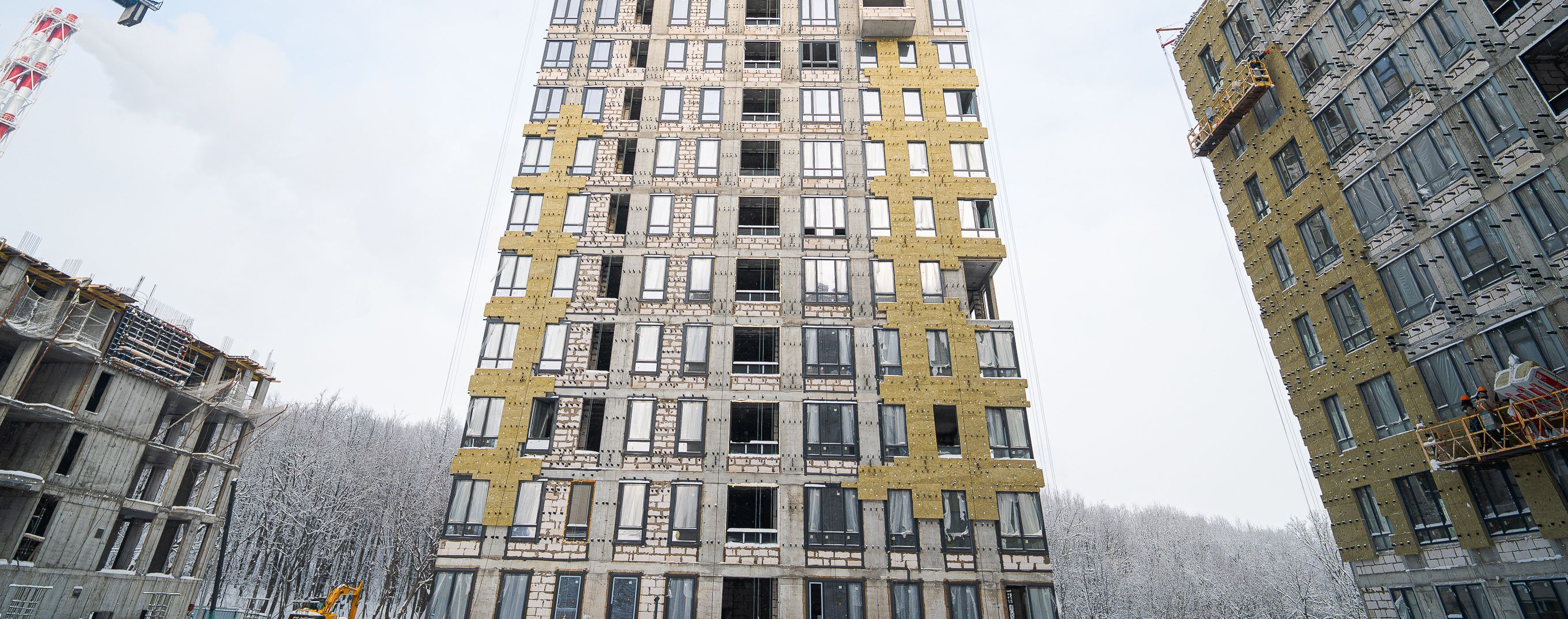 Строительство идёт по графику: первая очередь уже обретает завершённые черты. Во всех корпусах специалисты ведут фасадные работы. Инженеры налаживают электропроводку, отопление, вентиляцию и системы дымоудаления. Выполнен монтаж кровли во втором корпусе. Внутри паркинга выполняется устройство вентиляции и ведутся электромонтажные работы.