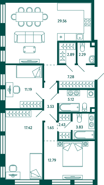 3-комнатная квартира